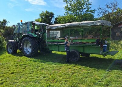 - Planwagenfahrt durch die Weinberge mit rheinhessischer Verpflegung „Rheinhessisches Vesperpaket oder Weck, Worscht un Woi“ und Informationen rund um die Traube